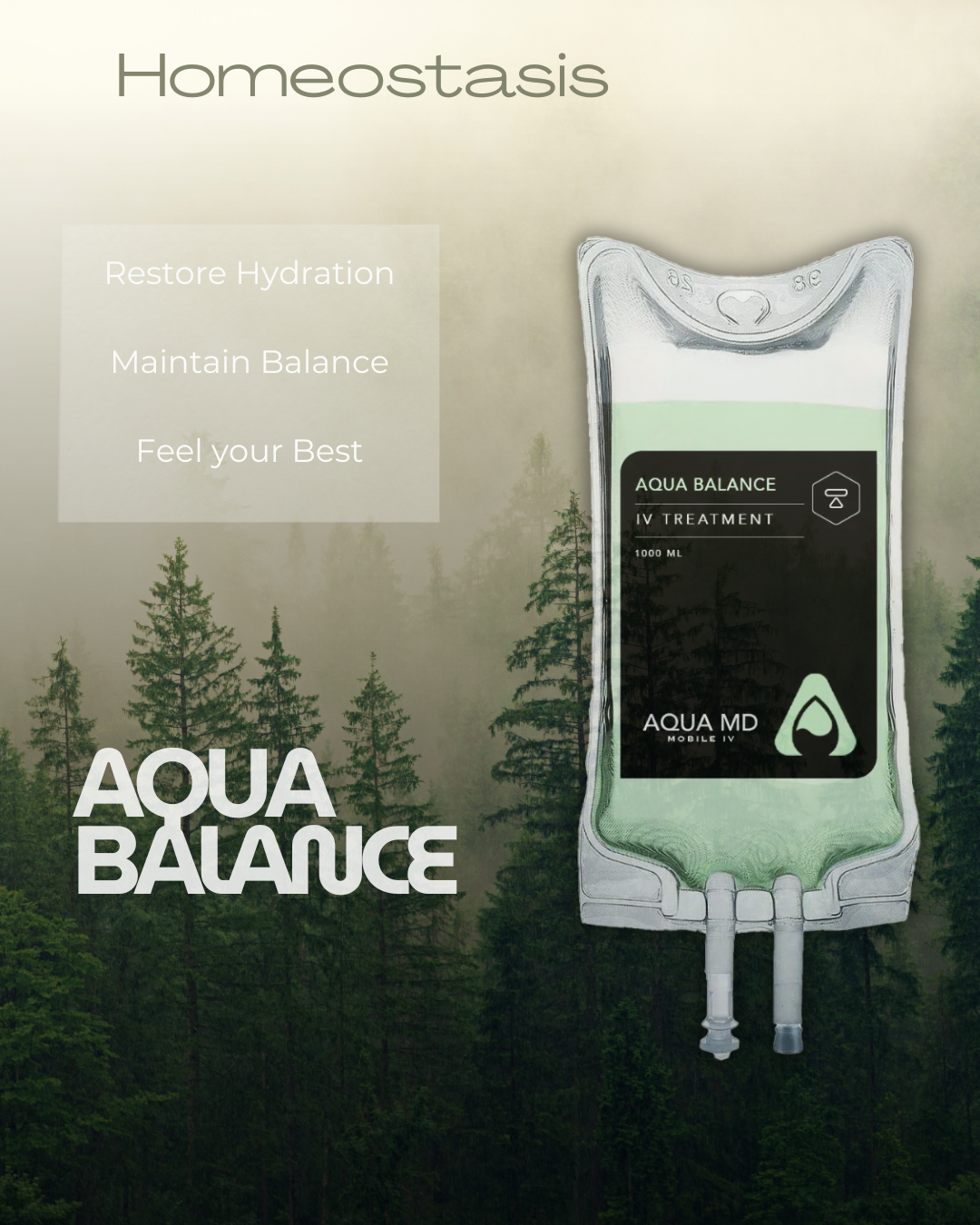 AQUA MD Mobile IV offers hydration-focused IV treatments like AQUA BALANCE designed to support recovery and restore fluid balance.